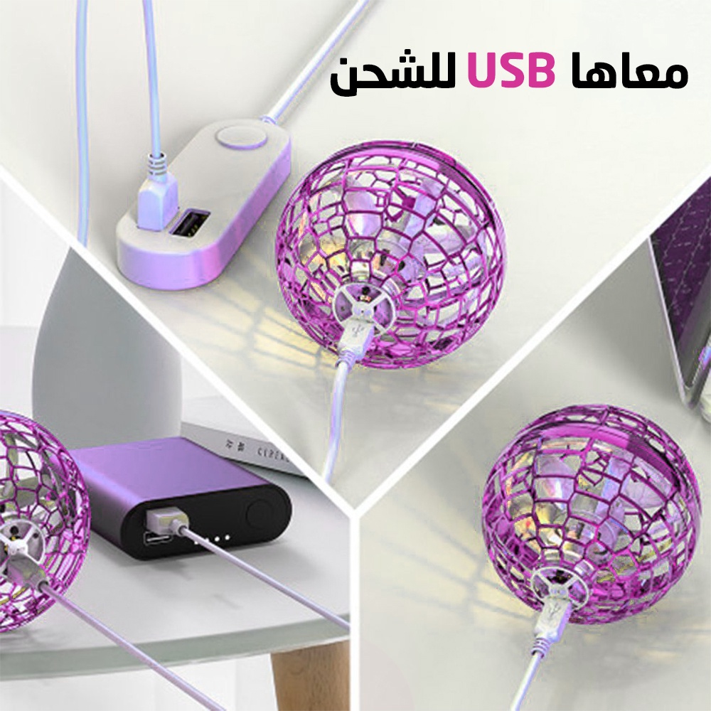 بتحب اللعب والفرهدة يبقى الكورة الطائرة المضيئة عشانك، لعبة مسلية بألوانها وتصميمها على شكل جرم سماوي هتجذب الانتباه بسينسور وبتشتغل بالشحن❤️